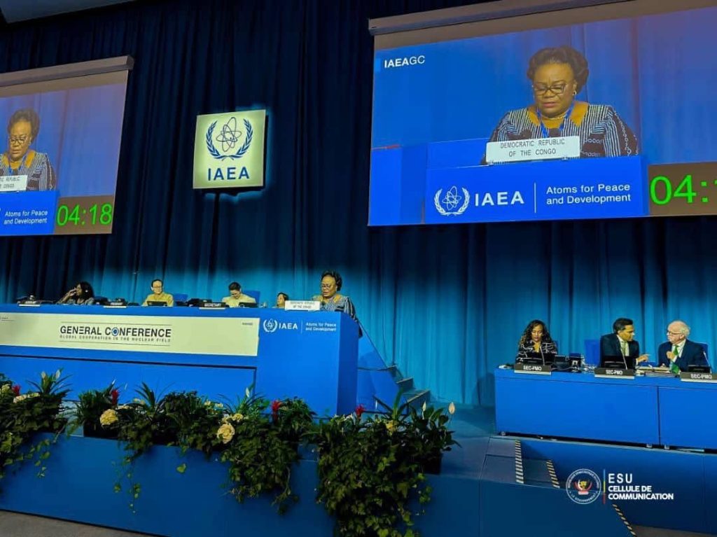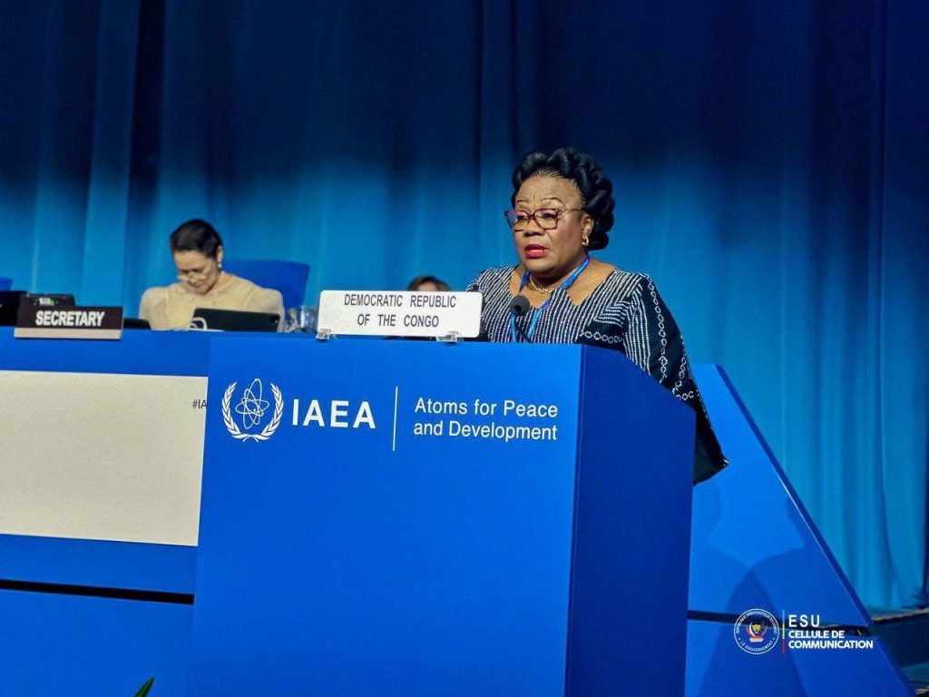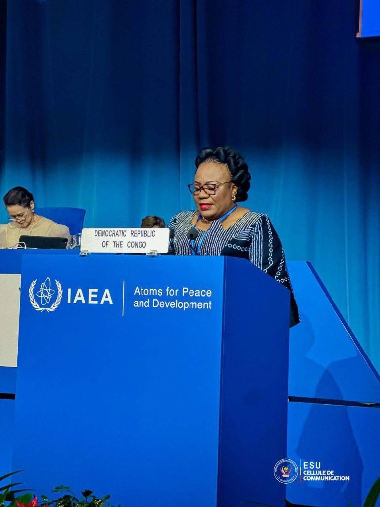 Depuis la tribune de Vienna International Centre, ce mardi 16 septembre 2025, la Ministre de l’Enseignement Supérieur, de la Recherche et de l’Innovation, Marie-Thérèse Sombo, a représenté la République Démocratique du Congo à la 69ᵉ Conférence de l’Agence Internationale de l’Énergie Atomique (AIEA). En prenant la parole, elle a affirmé l’engagement de la RDC à participer activement au développement des sciences nucléaires, en plaçant l’égalité des genres, la recherche et l’innovation au cœur de cette ambition, conformément à la vision du Président Félix Tshisekedi.