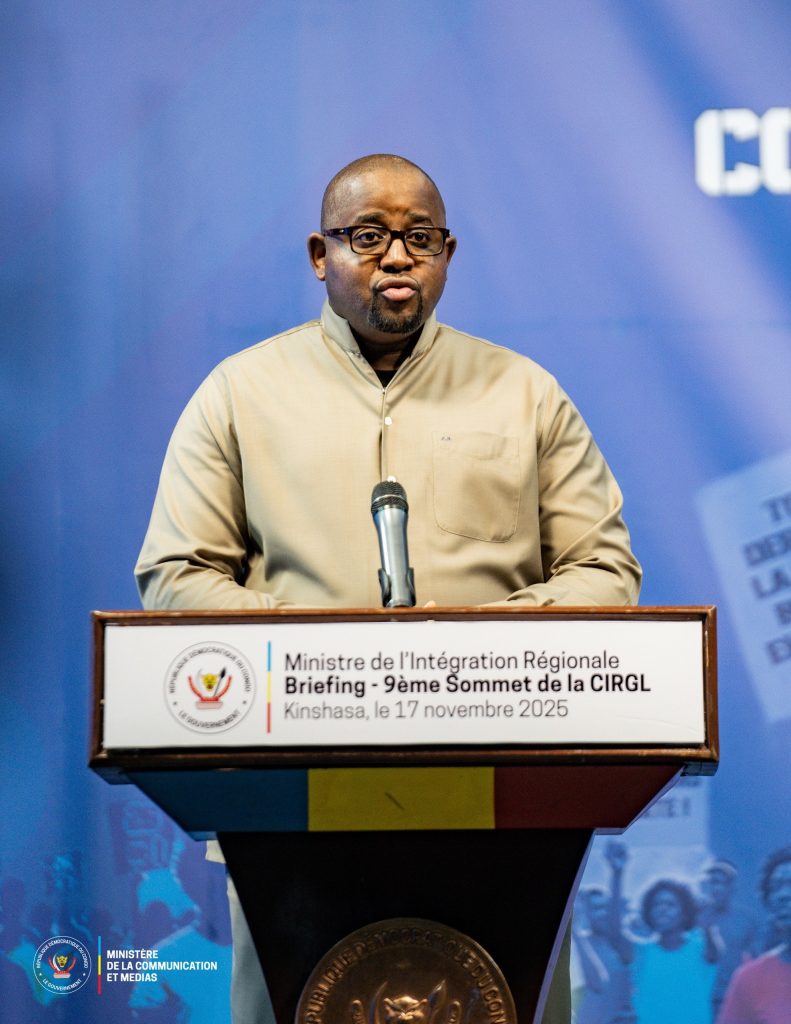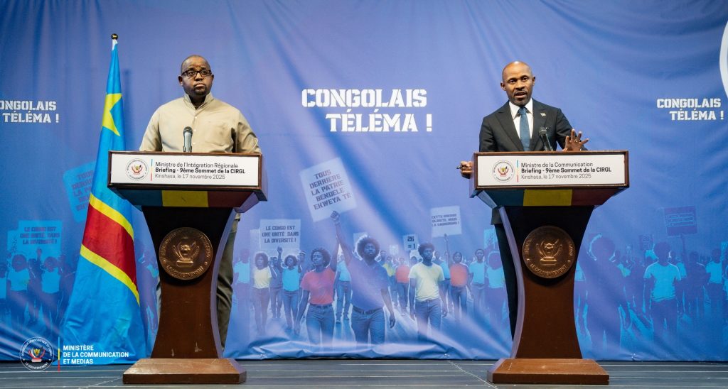 Lors d’un Special Briefing presse tenu le 17 novembre 2025 au studio Maman Angebi de la RTNC, les Ministres Floribert Anzuluni et Patrick Muyaya ont présenté les résultats du IXᵉ Sommet de la CIRGL ainsi que les priorités du mandat confié au Président Félix-Antoine Tshisekedi à la tête de cette organisation régionale. Un moment de pédagogie institutionnelle destiné à expliquer le rôle de la RDC dans la quête de paix et d’intégration économique dans la région des Grands Lacs.