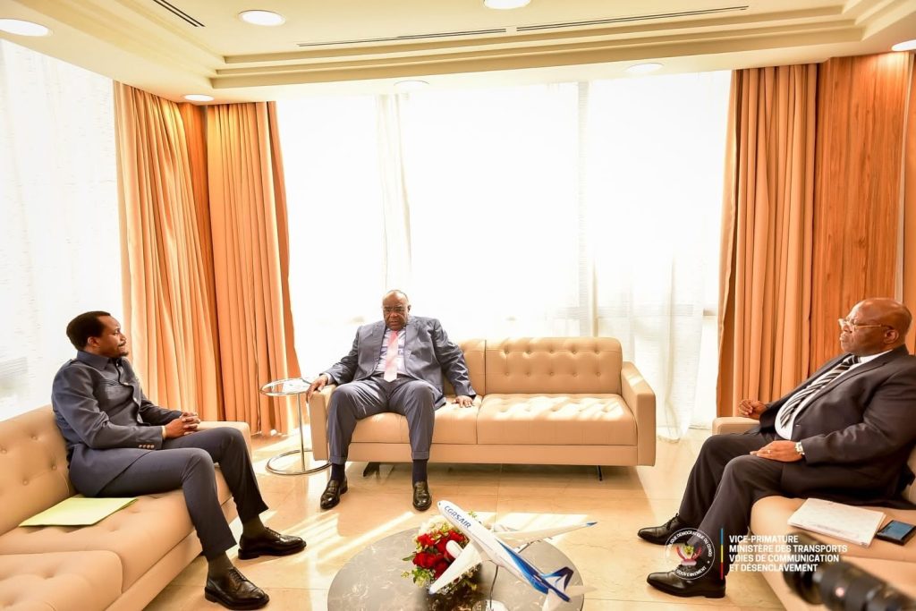 Le Vice-Premier Ministre, Ministre des Transports, Voies de Communication et Désenclavement, Jean-Pierre Bemba, a reçu mardi 31 mars 2026 en audience le Directeur général de l’Autorité de Régulation de la Sous-traitance dans le secteur privé (ARSP), Miguel Kashal Katemb, ainsi que le Président de la Fédération des Entreprises du Congo (FEC), Robert Malumba Kalombo. Au centre des échanges : la mise en œuvre effective de la priorité accordée aux transporteurs congolais dans les opérations d’importation et d’exportation par voie routière, notamment dans la chaîne logistique des minerais.